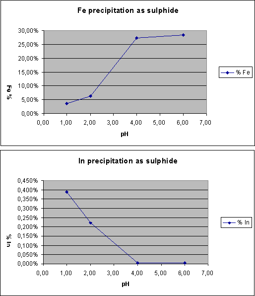 Gallium and Indium have similar properties, and both were separated from iron in the sulphide precipitate as the following graph shows:
